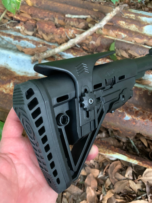 -Includes adjustable stock and grip on a standard (Milspec) Aluminum base.